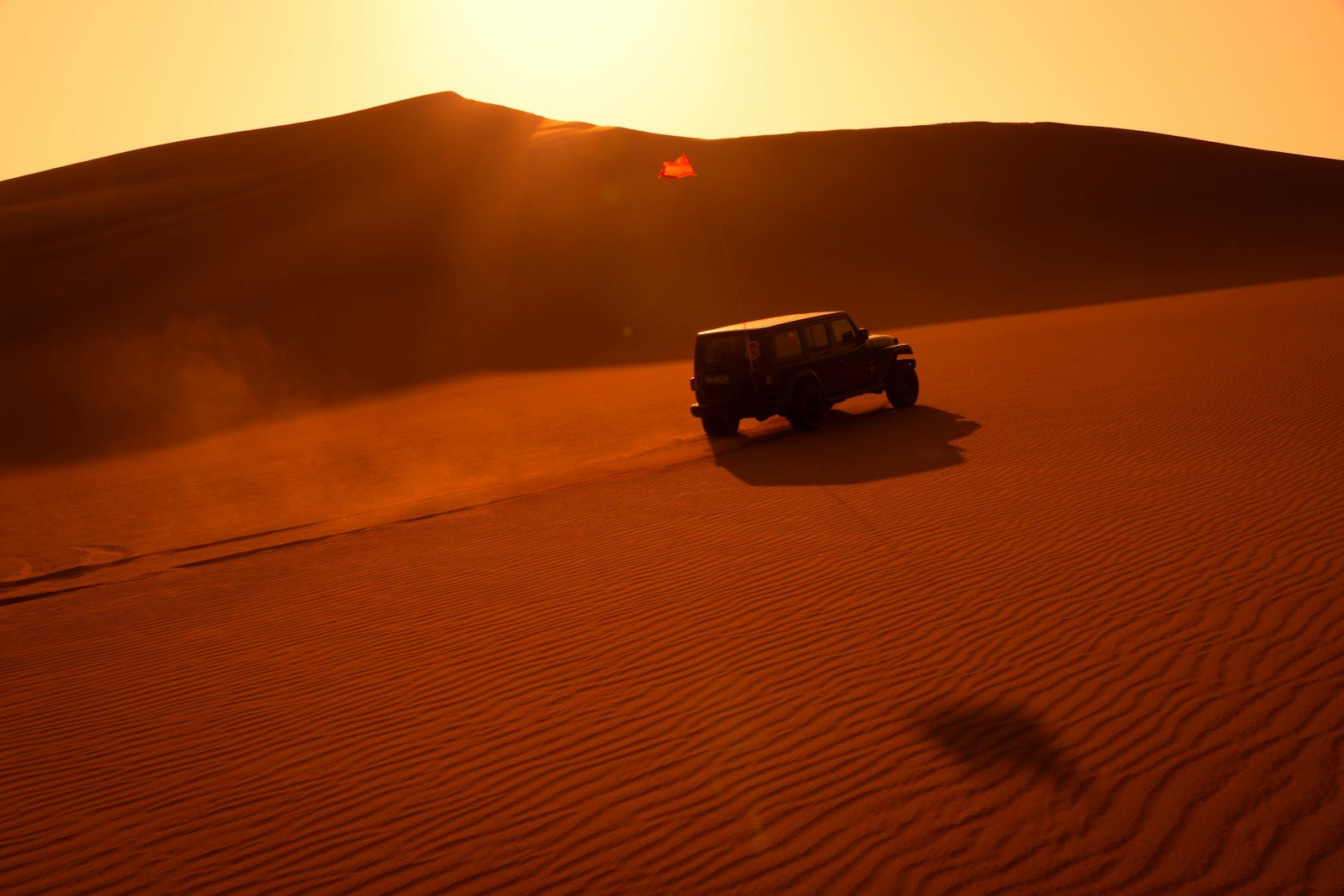 Witness the desert awaken on our Sunrise Morning Desert Safari! Beat the heat as you watch golden sands glow under the first light. Enjoy thrilling dune bashing, glide down silky slopes sandboarding, and savor a tranquil camel ride at sunrise. This shared group tour includes convenient hotel pick-up/drop-off, bottled water, and unforgettable views—all before the city stirs. Pure magic, no crowds!