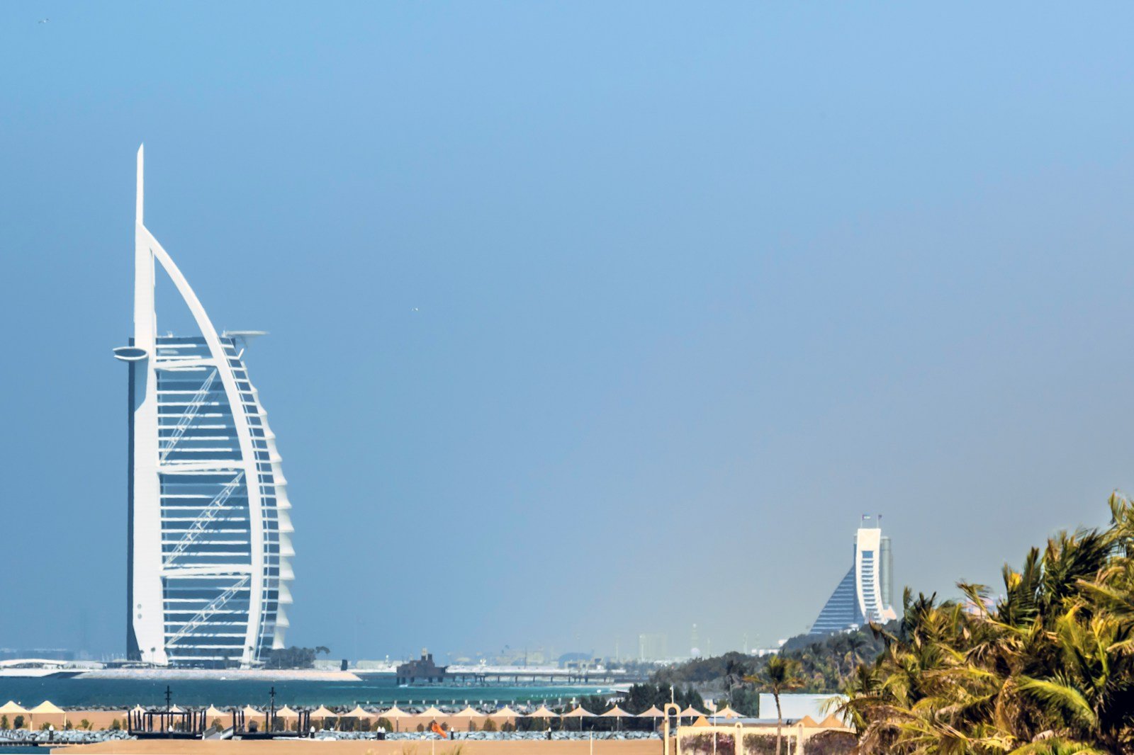 Driving along Jumeirah Beach Road to view luxury hotels and the coastline.